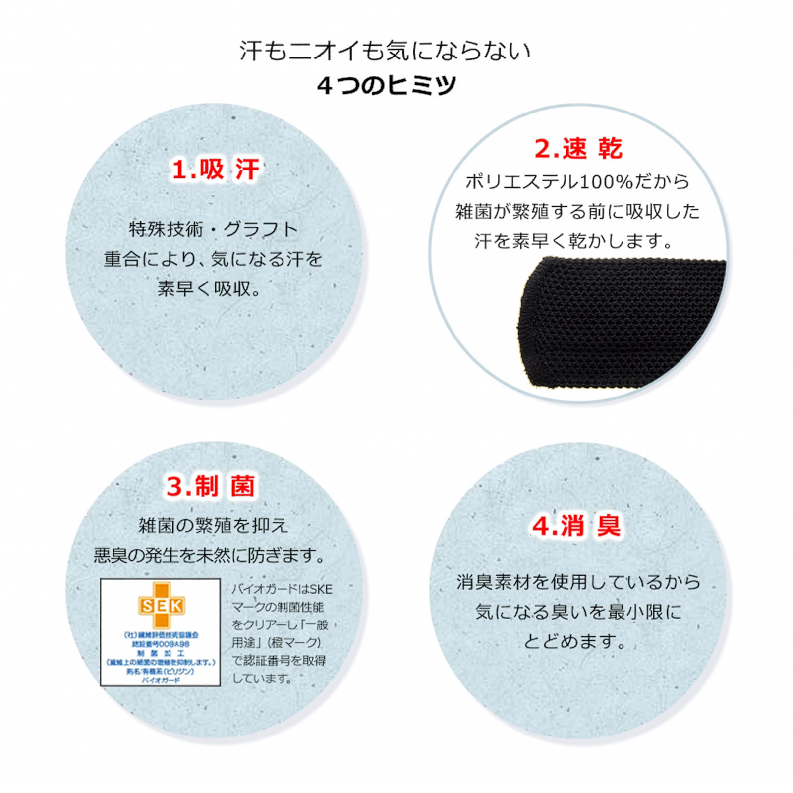 制菌値 黄色ぶどう球菌 静菌活性値 5,8 (一般財団)ボーケン品質評価機構 ※JIS規格2,0以上