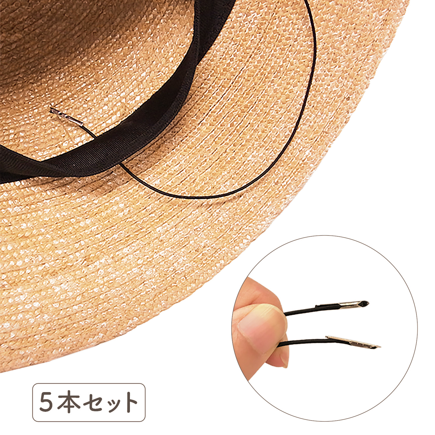 本製品は、そんな場合に帽子の内側に直接装着することができる簡易的なゴムストラップです。 <商品情報> 差し込み式 ゴム紐(帽子 ハット 風飛び防止 簡易 あご紐)