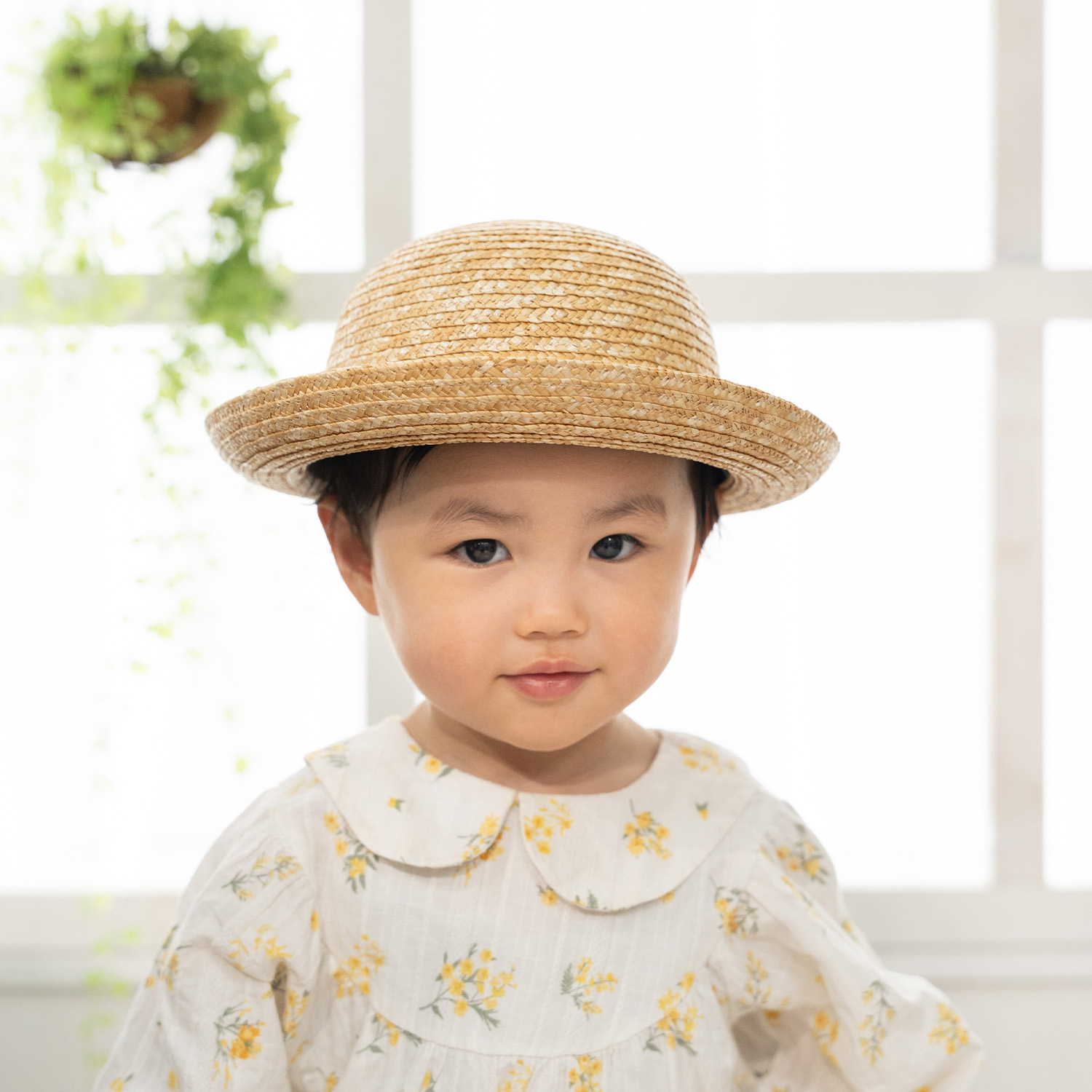 細麦で高級感があり、両親や祖父母から贈り物としても喜ばれる人気No.1。 暑い日差しから子供を守る天然素材の麦わら帽子