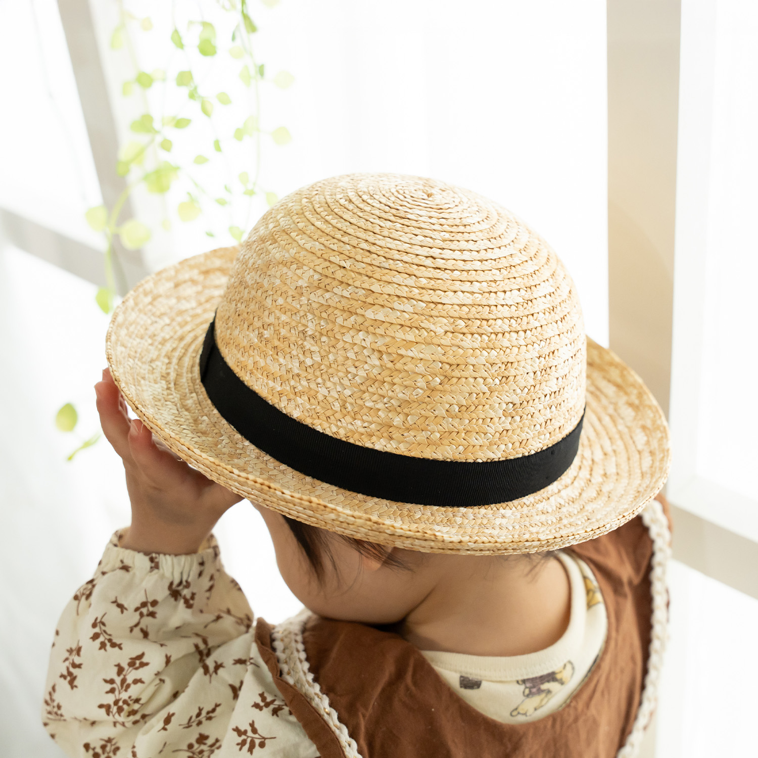 セーラー帽子 定番のキッズ用麦わら帽子。天然素材で通気性が良く、丸型でフィット感も抜群!