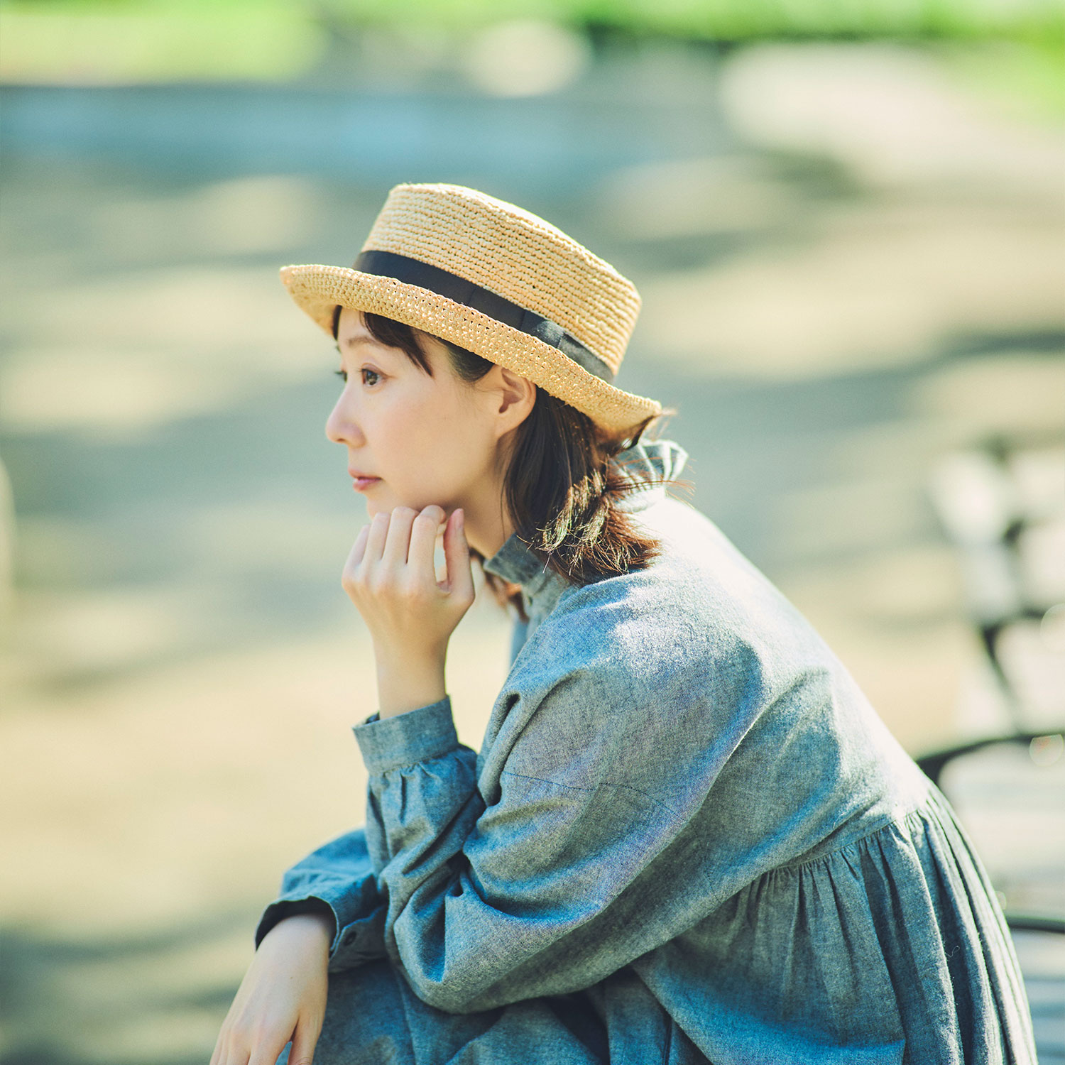 欧米型は日本型に比べて横幅が狭く、正面から見た際にすっきりとしたシャープな印象を与えます。つばは全体的にわずかに上がったデザインですが、つば先にワイヤーを入れているため、真っすぐに整えることも可能。その際はカンカン帽のような雰囲気も楽しめるため、「カンカン帽好き」の女性からも人気を集めています。
