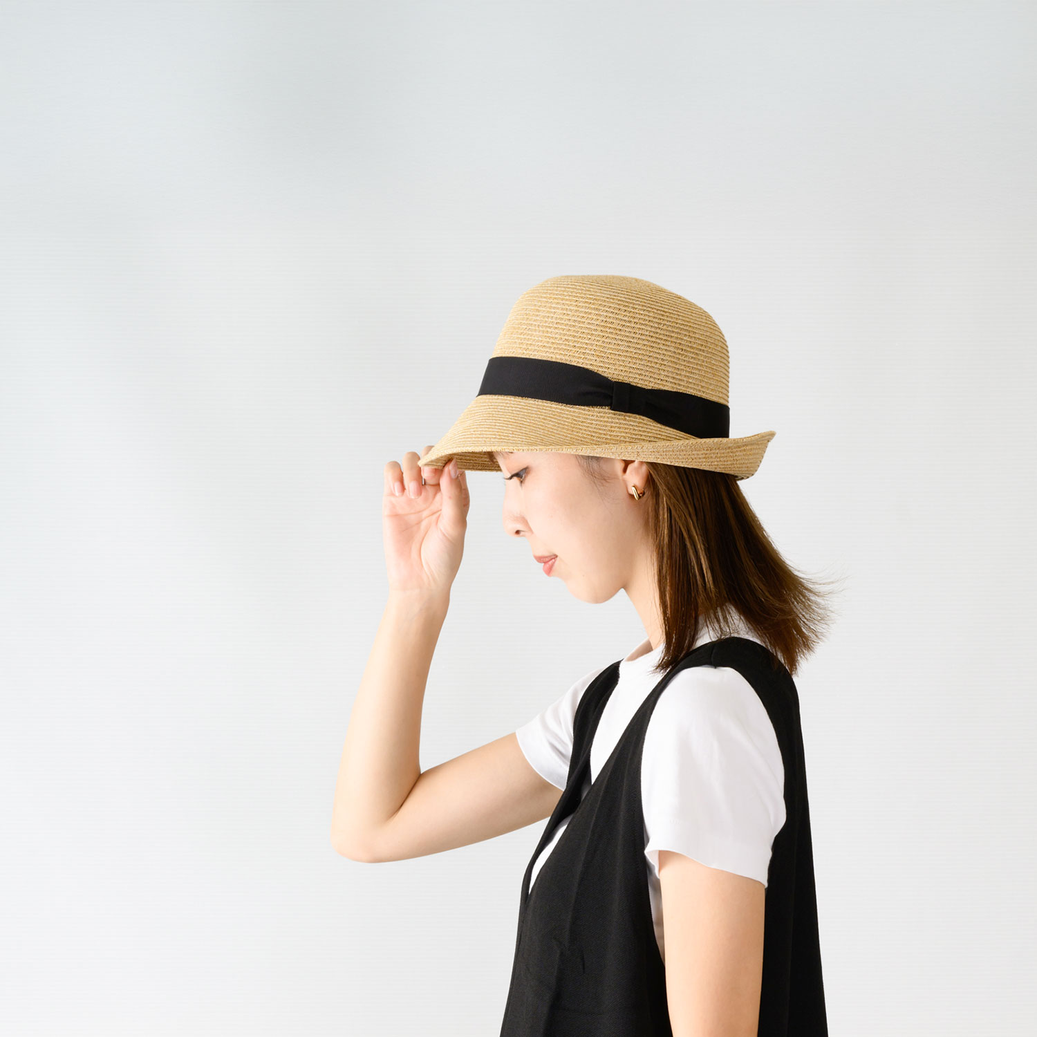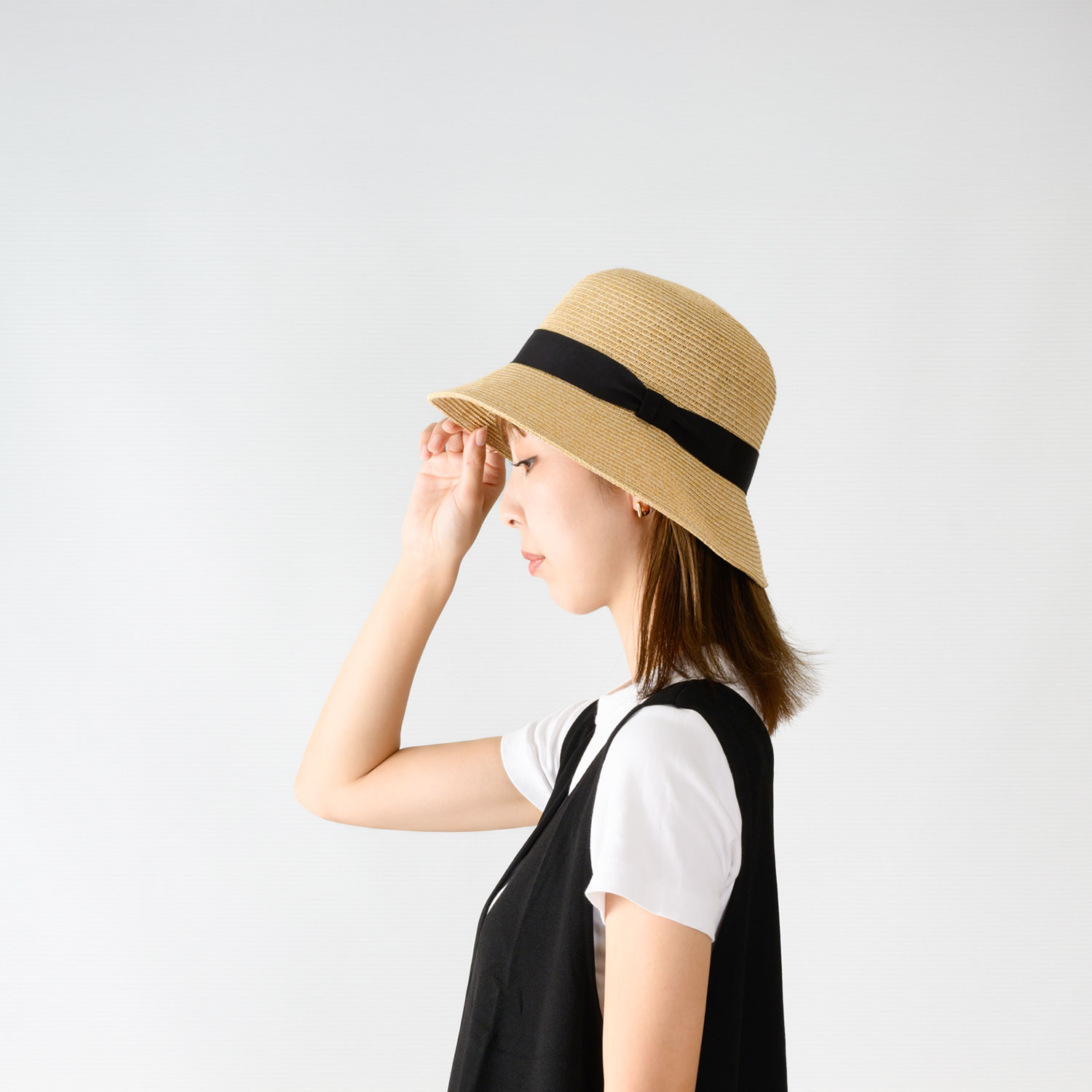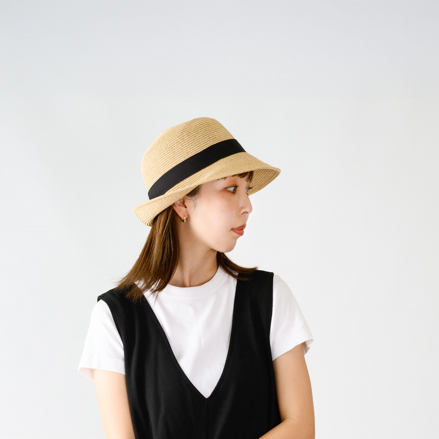 麻調のブレード素材を使用した、たためる仕様のハット。やわらかくしなやかな編み立てで、形を保ちながらもコンパクトに折りたためるため、持ち運びにも便利です。かちっとしすぎない丸みのあるシルエットが、日常の装いに自然となじみ、気負わずカジュアルにかぶれます。シンプルなリボン使いが全体をほどよく引き締め、幅広いコーディネートに合わせやすいデザイン。デイリーから旅行まで活躍する帽子です。