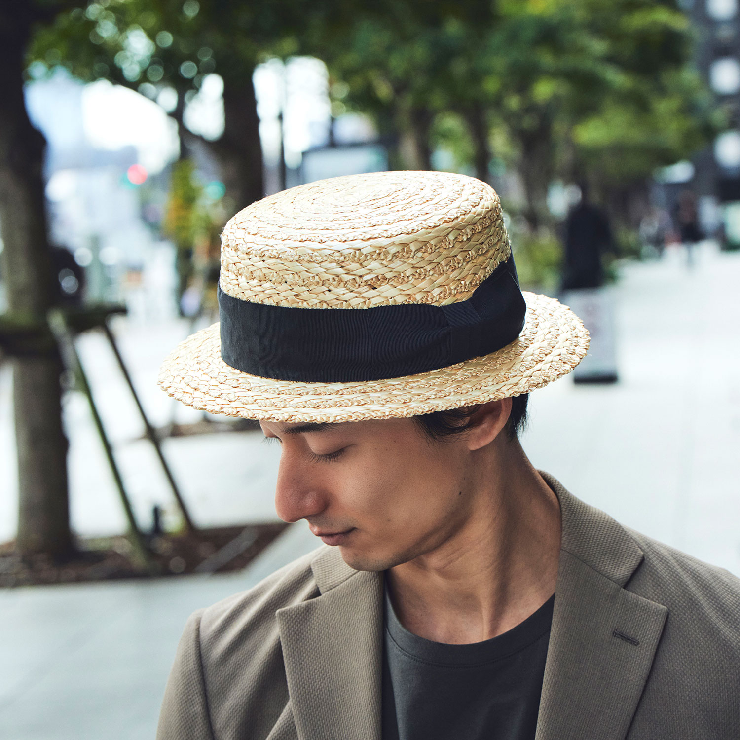 通気性に優れ、日除けに最適な「麦わら」素材
