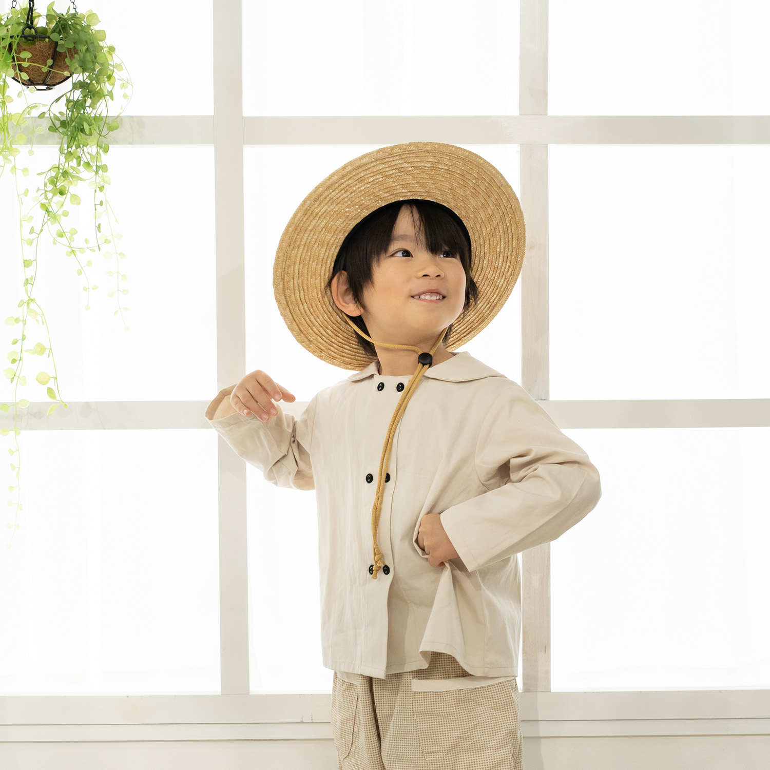 TOP > つば長め > 田中帽子店Roger(ロジャー)子供用・麦わら つば広丸型ハット