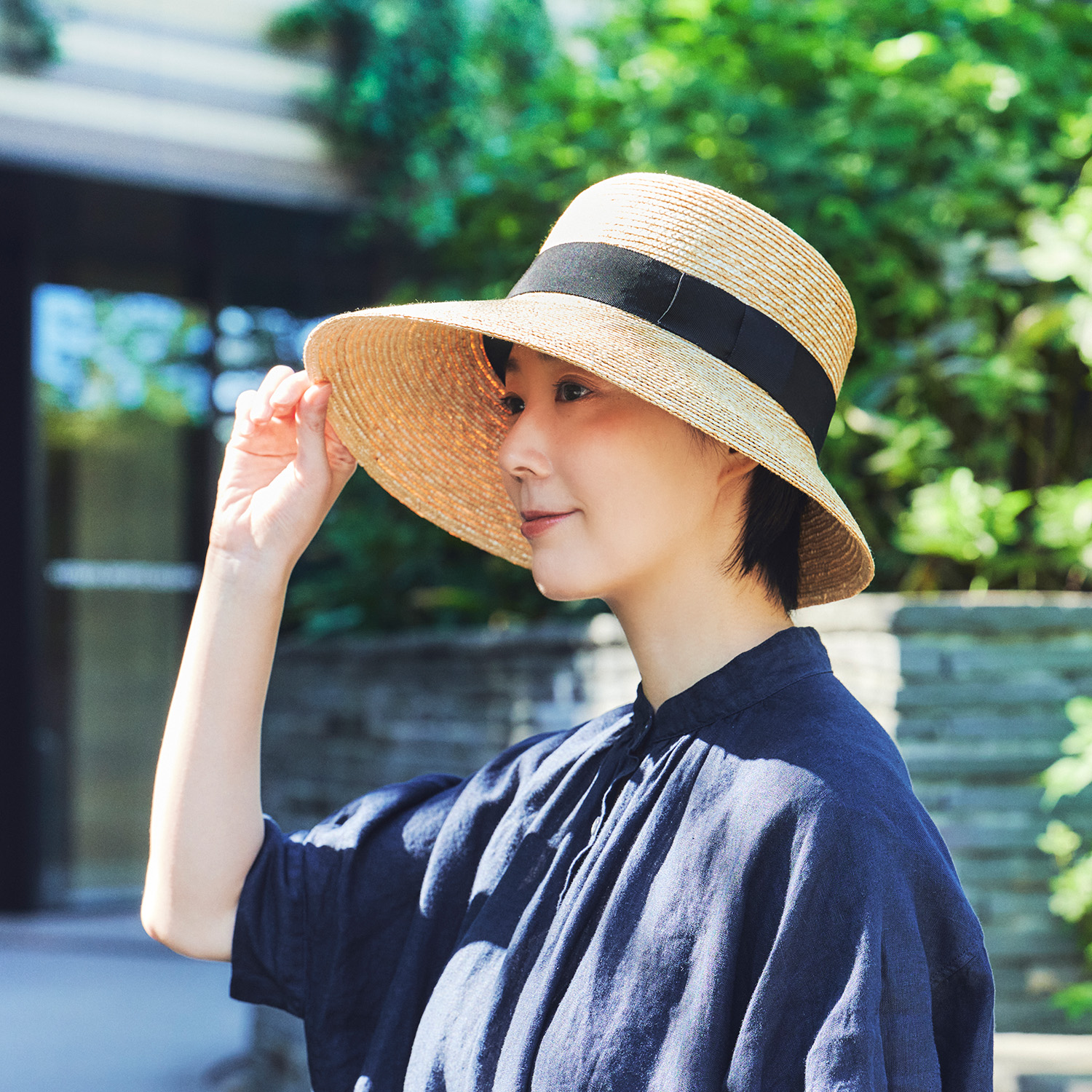 数あるモデルの中で1番つばを長く作り、より顔を日差しから守るつば長デザインの女優帽。