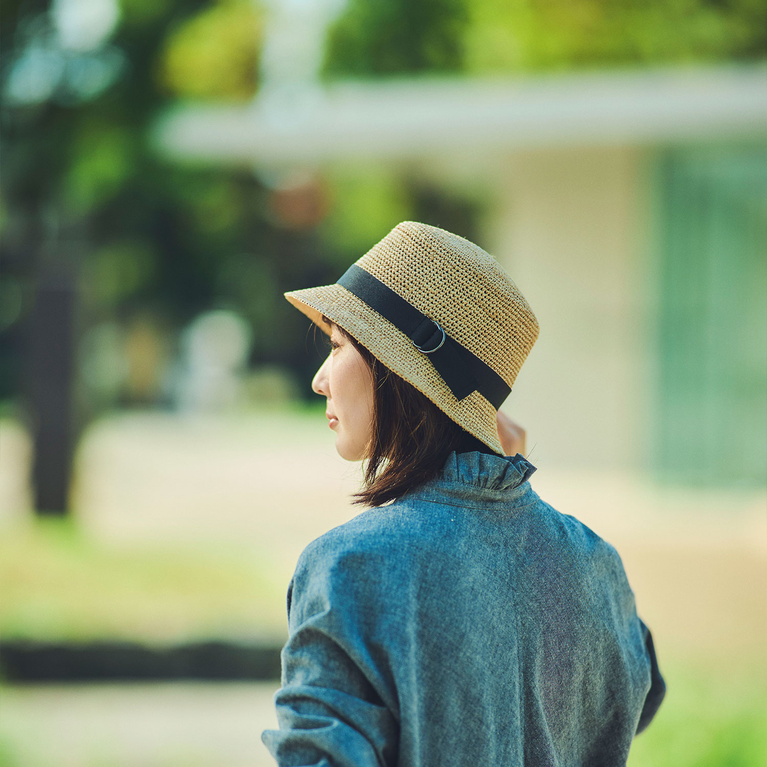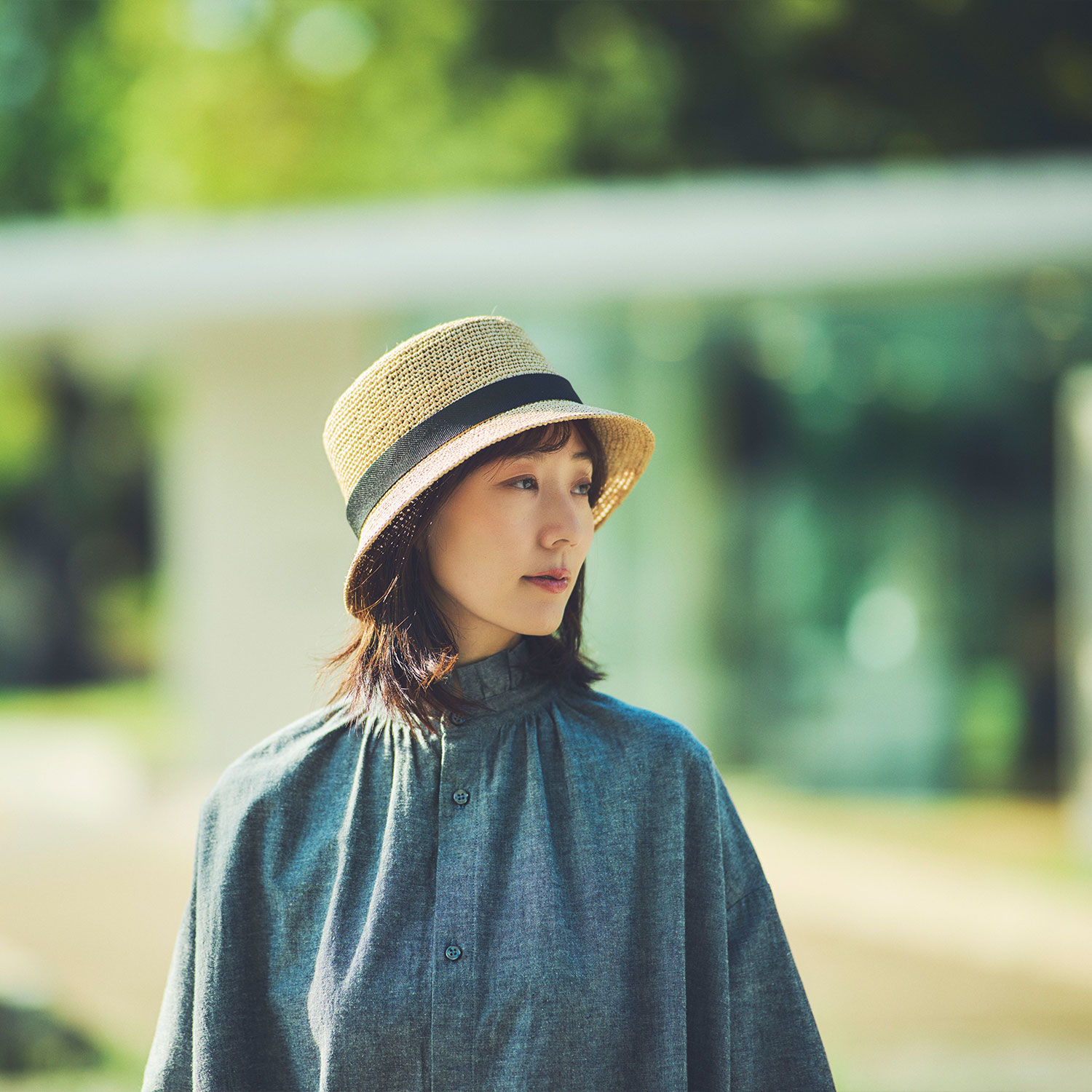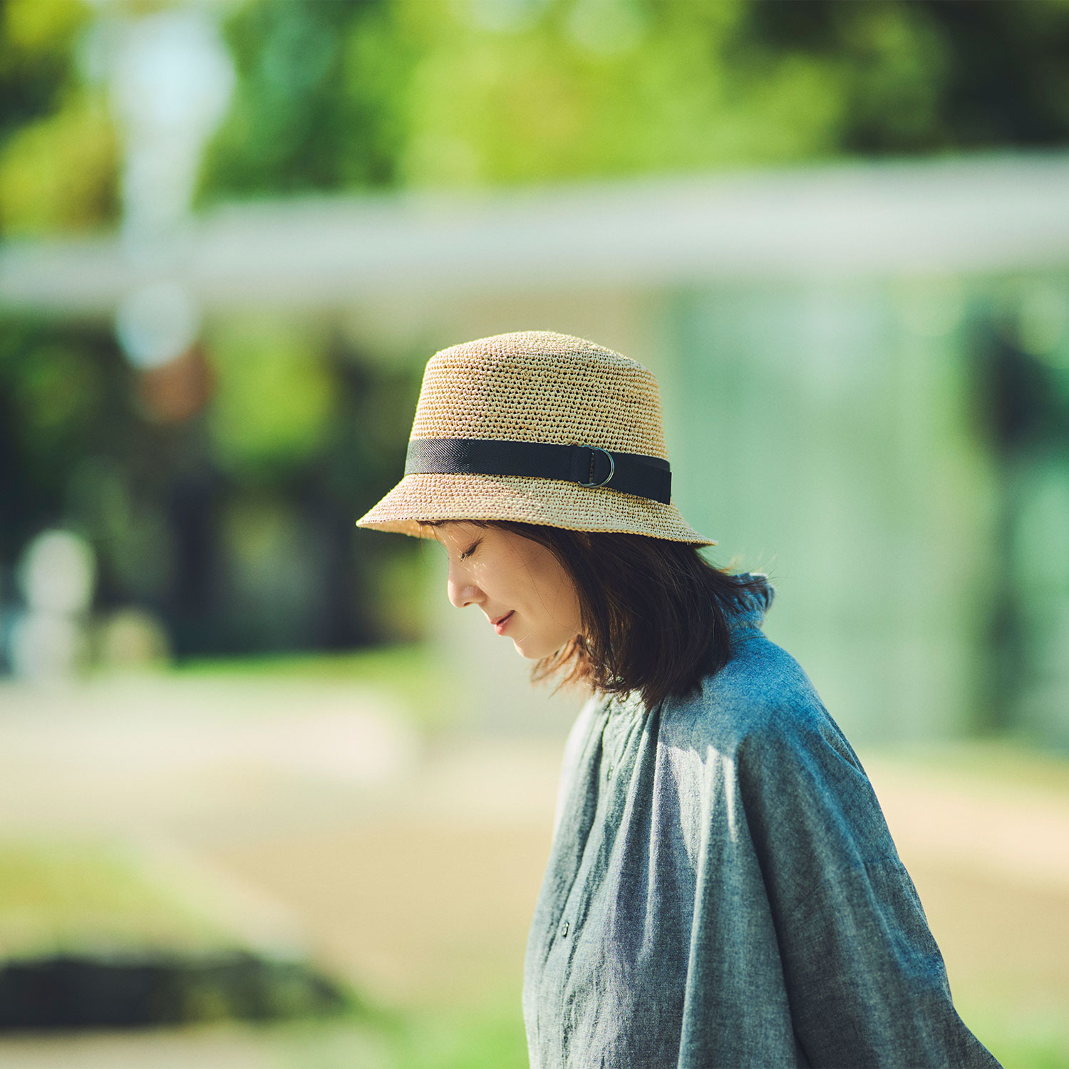 しなやかでかぶりやすい、ラフィア素材のバケットハット。