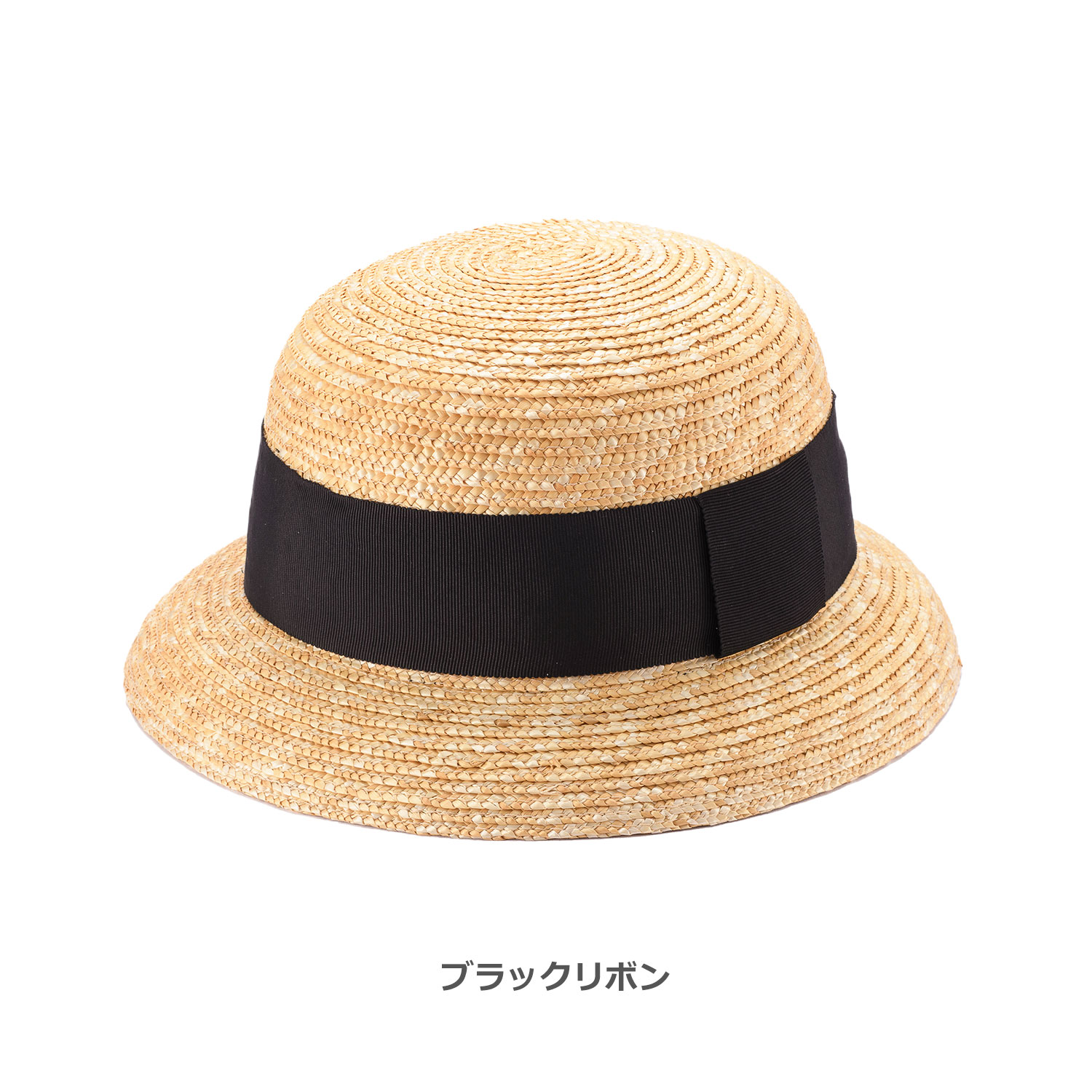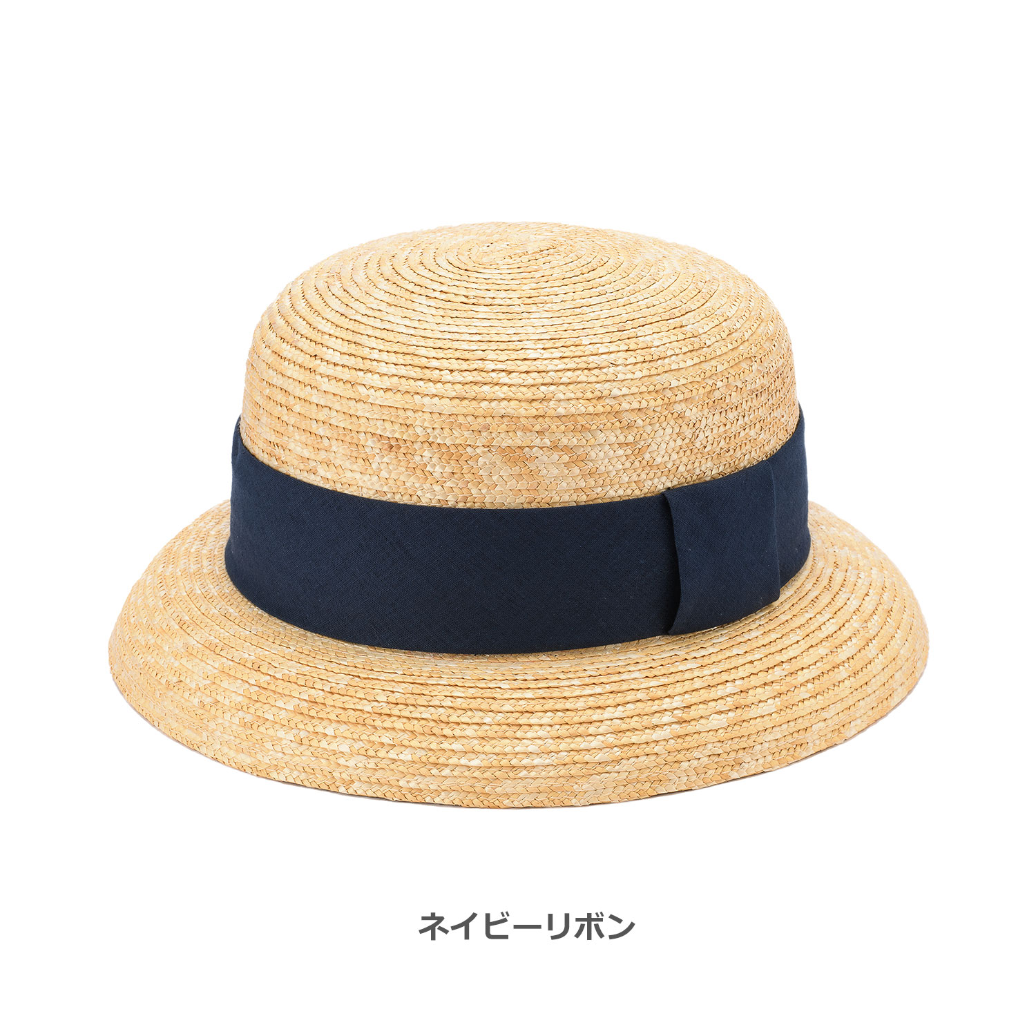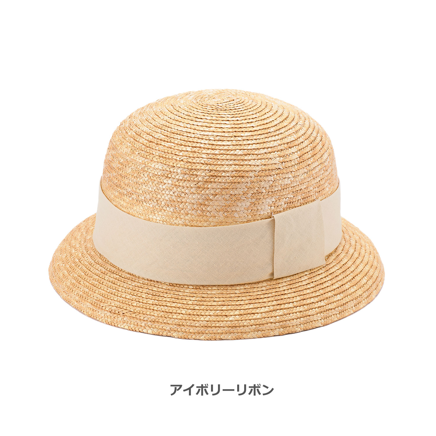 麦わら クロッシェ 太めのリボンがクラシカルな趣きのハット。フレーム効果で小顔に見せるつばのデザイン。
