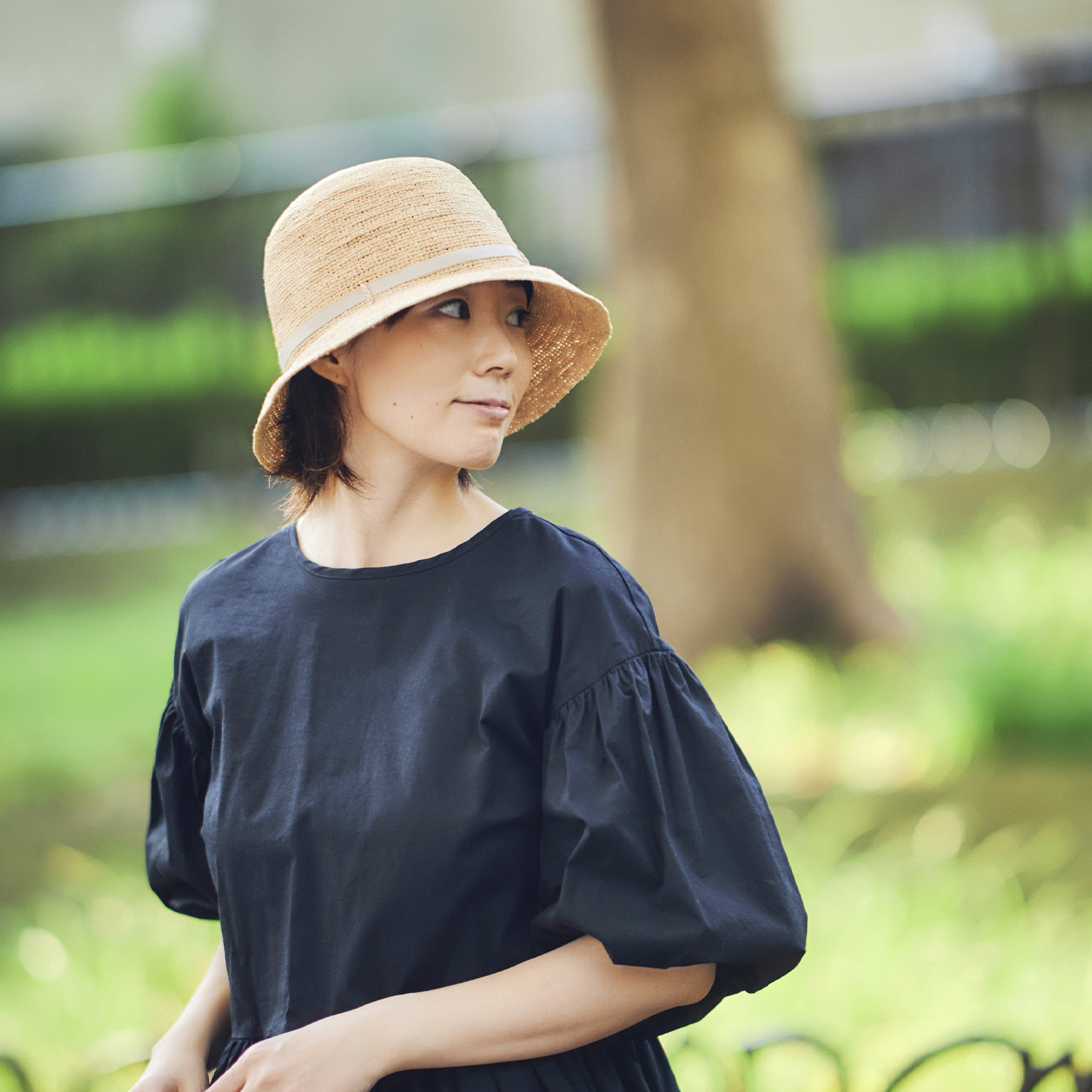 軽量で、折り畳みが可能な細編みのラフィアを使用