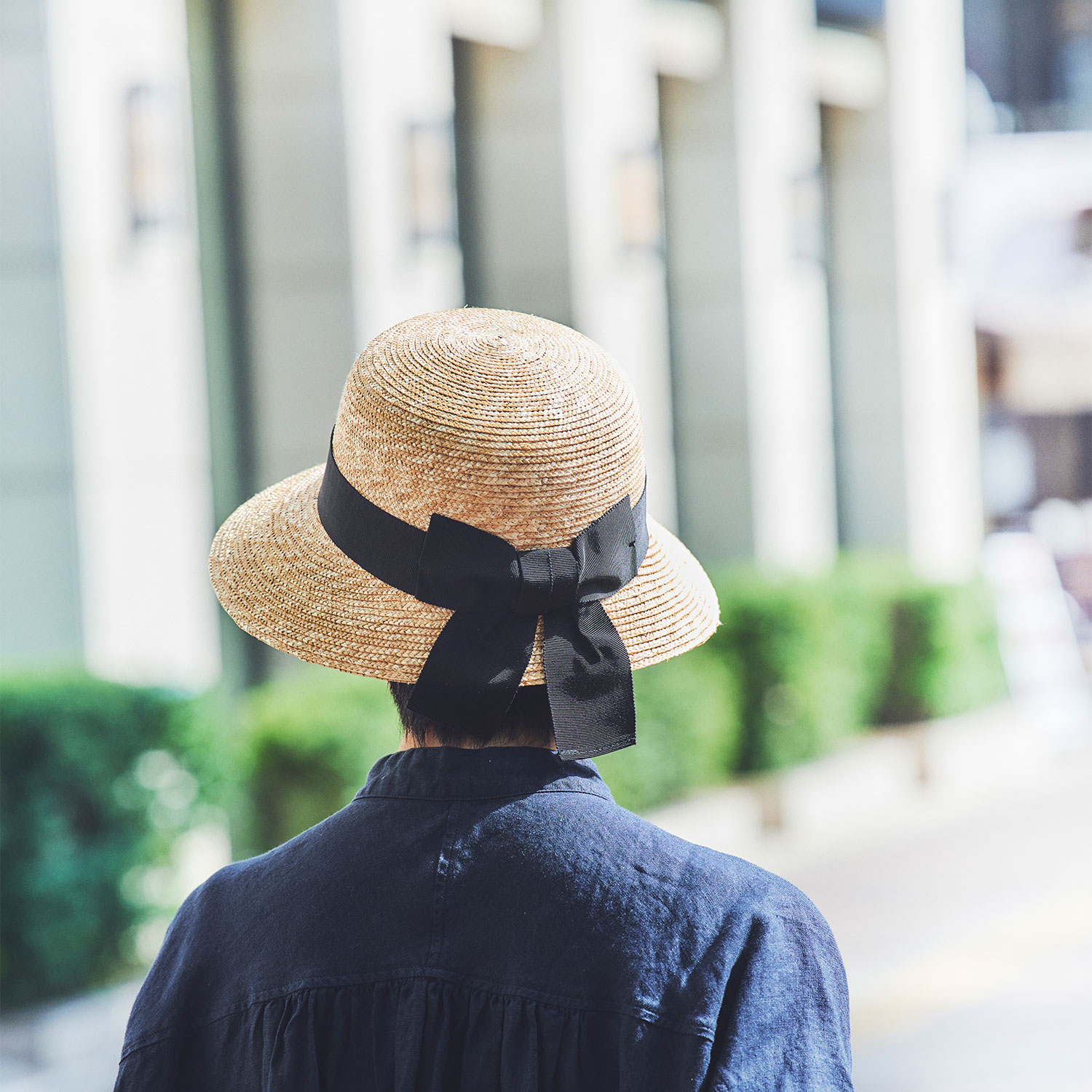 シンプルで飽きの来ないフォルムと後ろの大きなリボンが特長。 上品なスタイルからカジュアルテイストまで