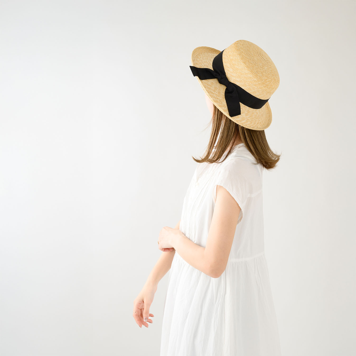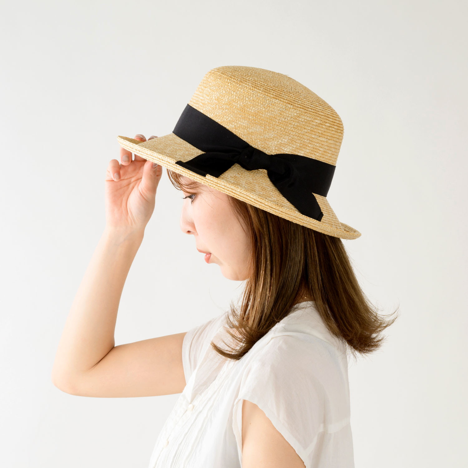 女性らしさが感じられ、あらゆる装いにマッチするアイテム。 つば上がりで”顔の印象が明るく”見える