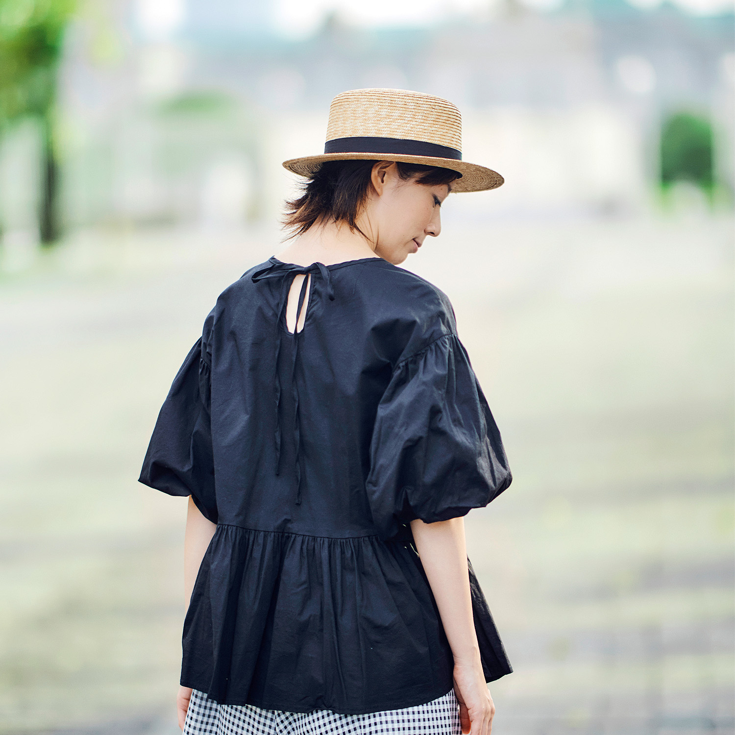 しっかりとかぶれる約9cmというクラウンの高さと程良いつばの長さがしっくりきます。 ![]() シンプルなリボンで、どんな装いにも合う!
