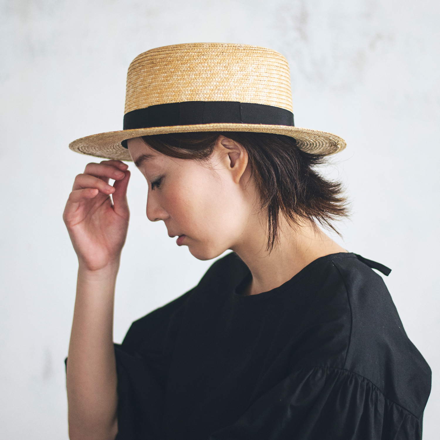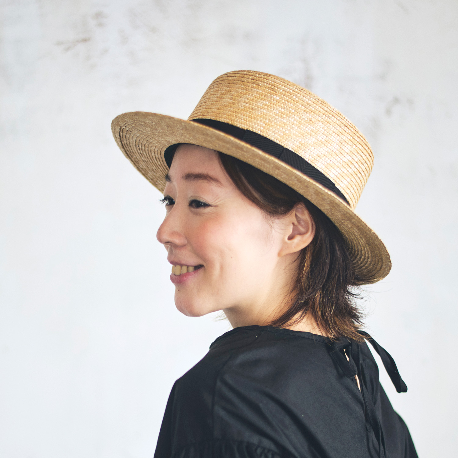 細い麦で作ることで、職人の手仕事が感じられ、上品な雰囲気も醸し出しています。しっかりかぶっても、少しのせるように斜めにかぶってもかぶり方は自由自在。