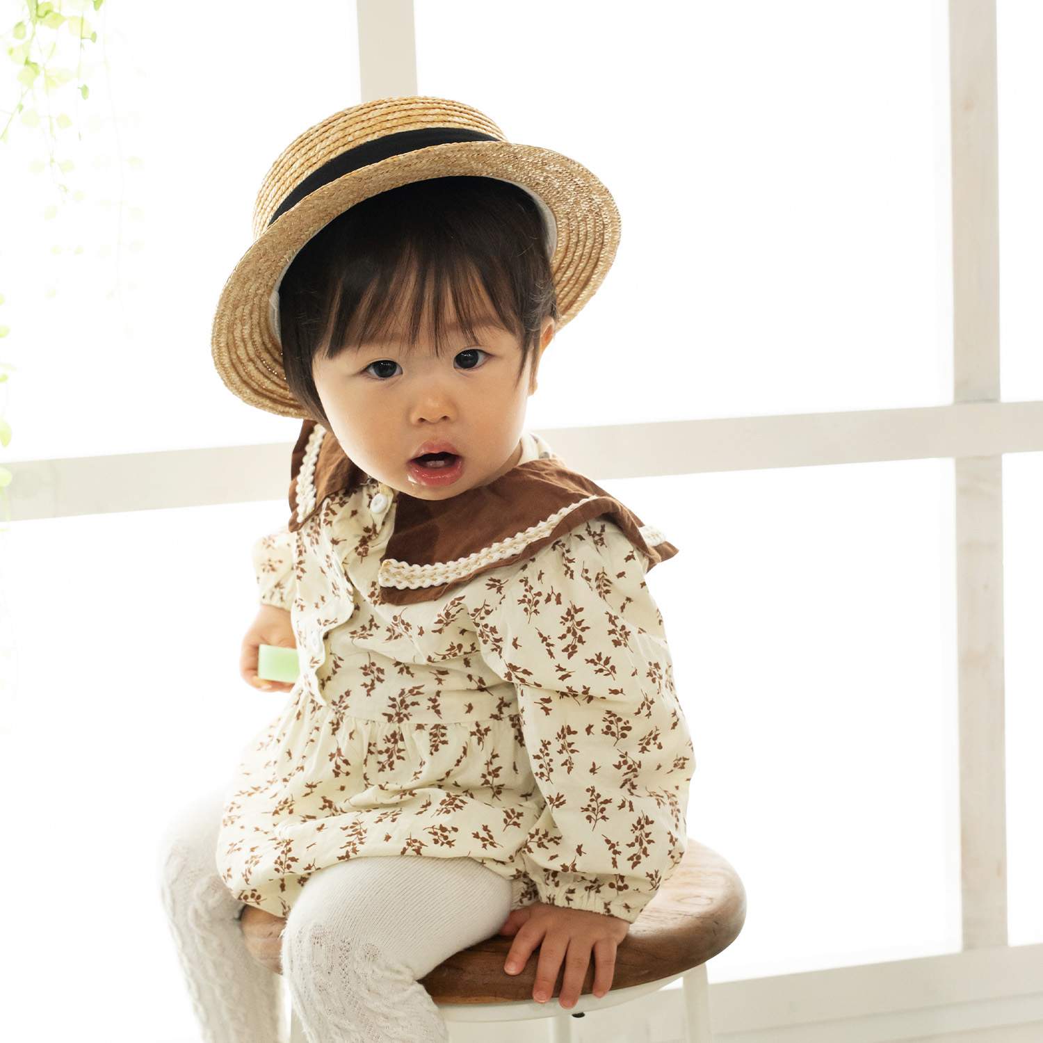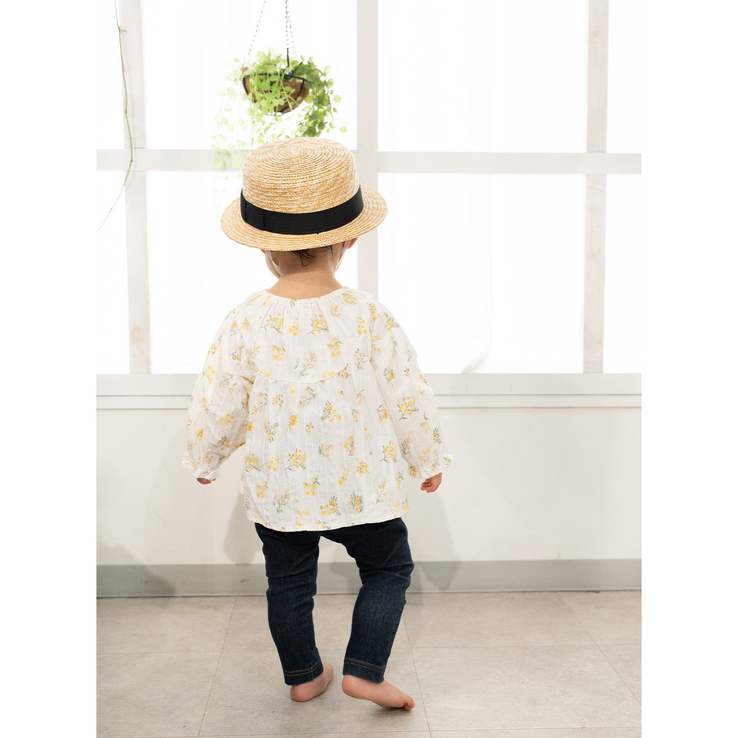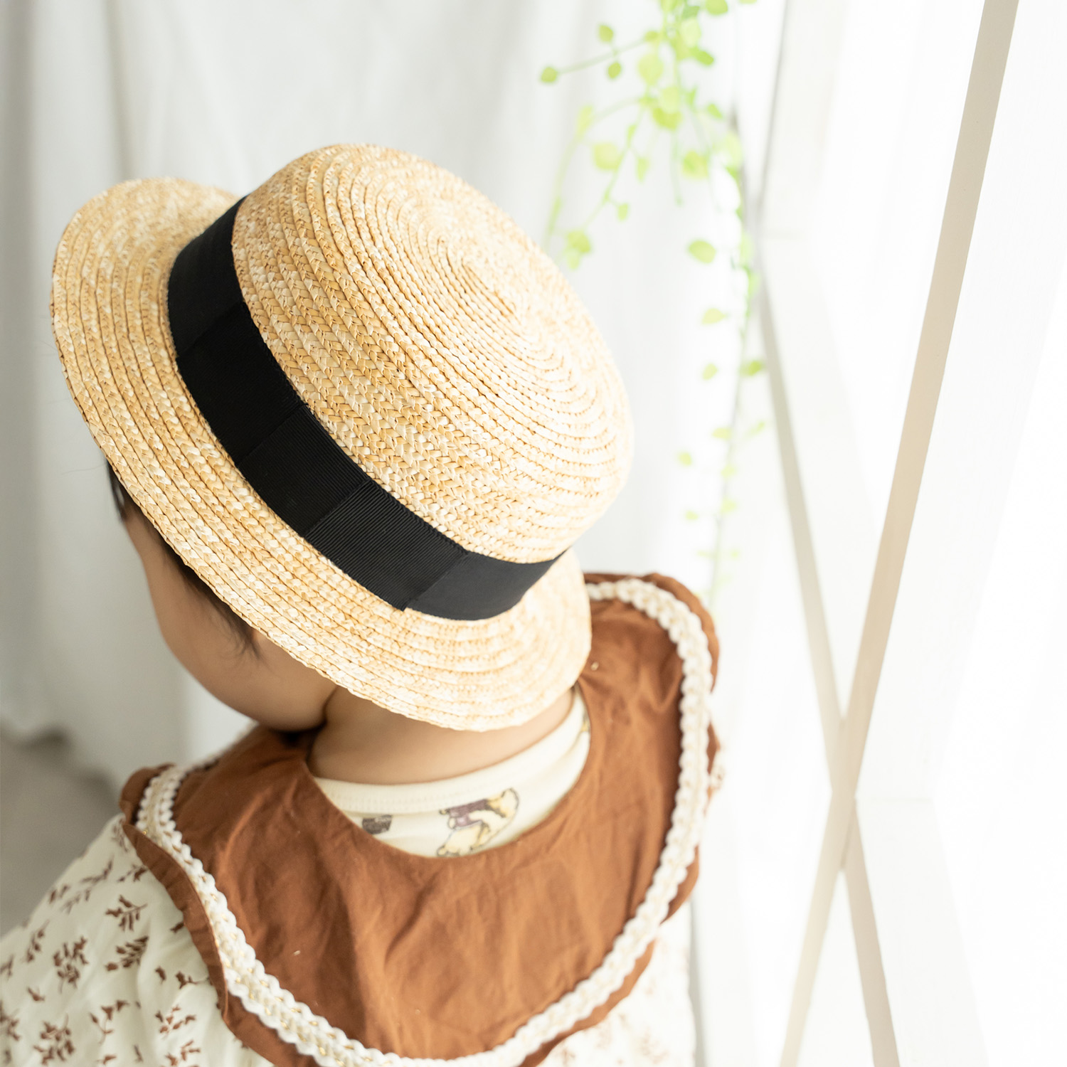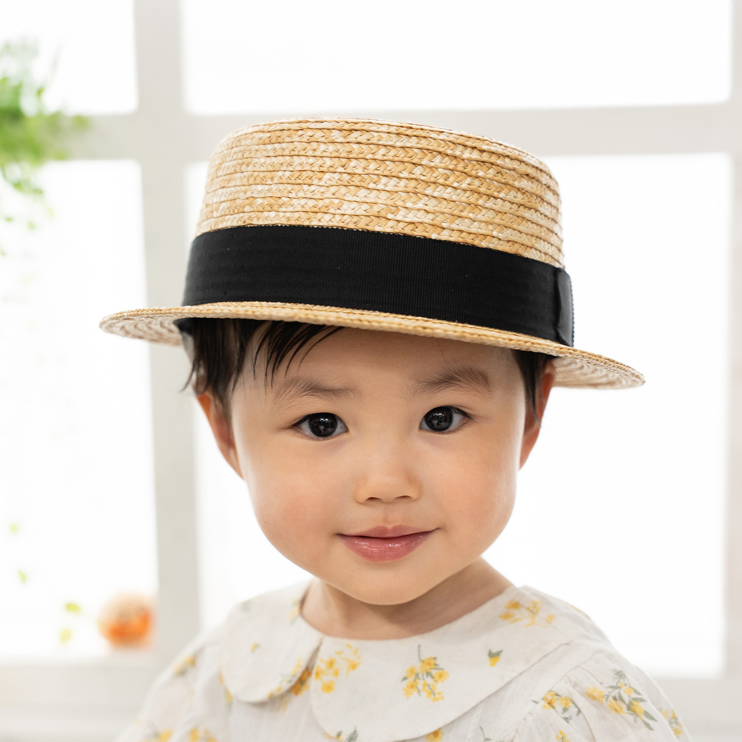 カンカン帽と言えば頭部が平らで丸型デザイン。のせるように被ったり、少し斜めに被ったりと被り方も様々。夏のファッションのワードローブとして欠かせない帽子をキッズサイズで企画。