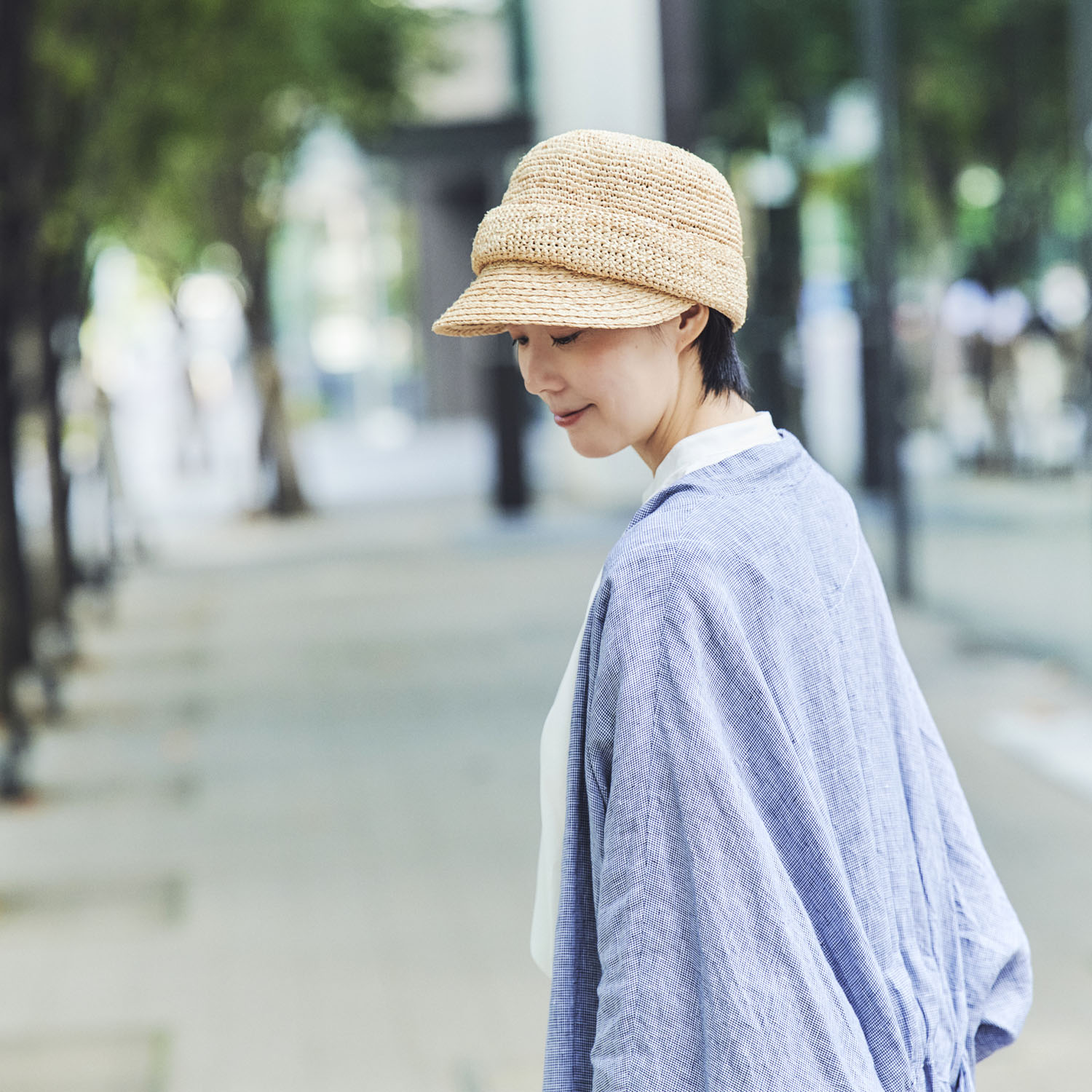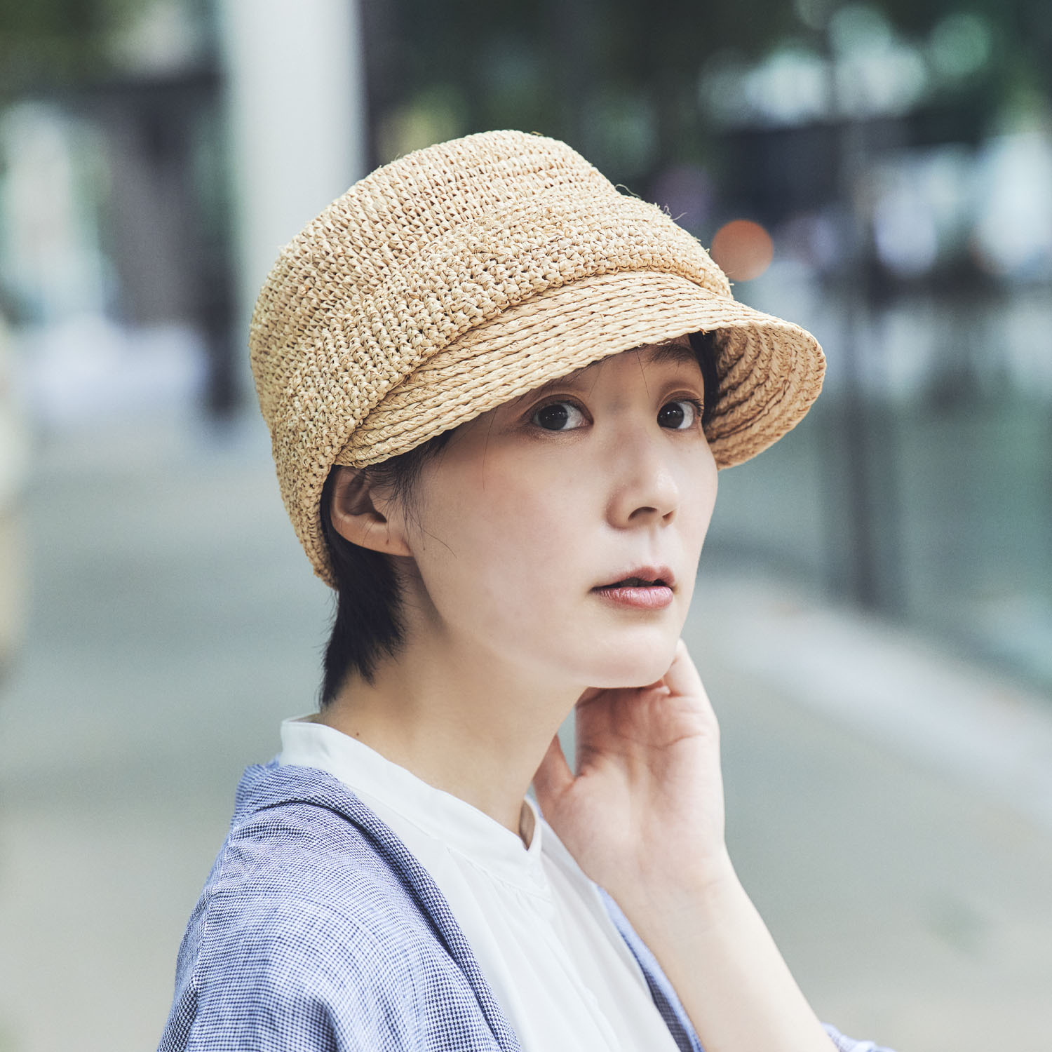 涼しげな素材感と軽さが魅力のラフィア素材でキャスケットを作りました。