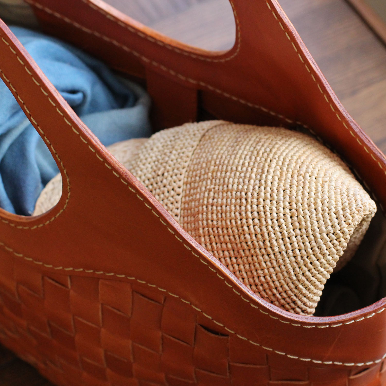 天然素材の色合いとざっくりとした感じが魅力。丸めて携帯できるのも便利。
