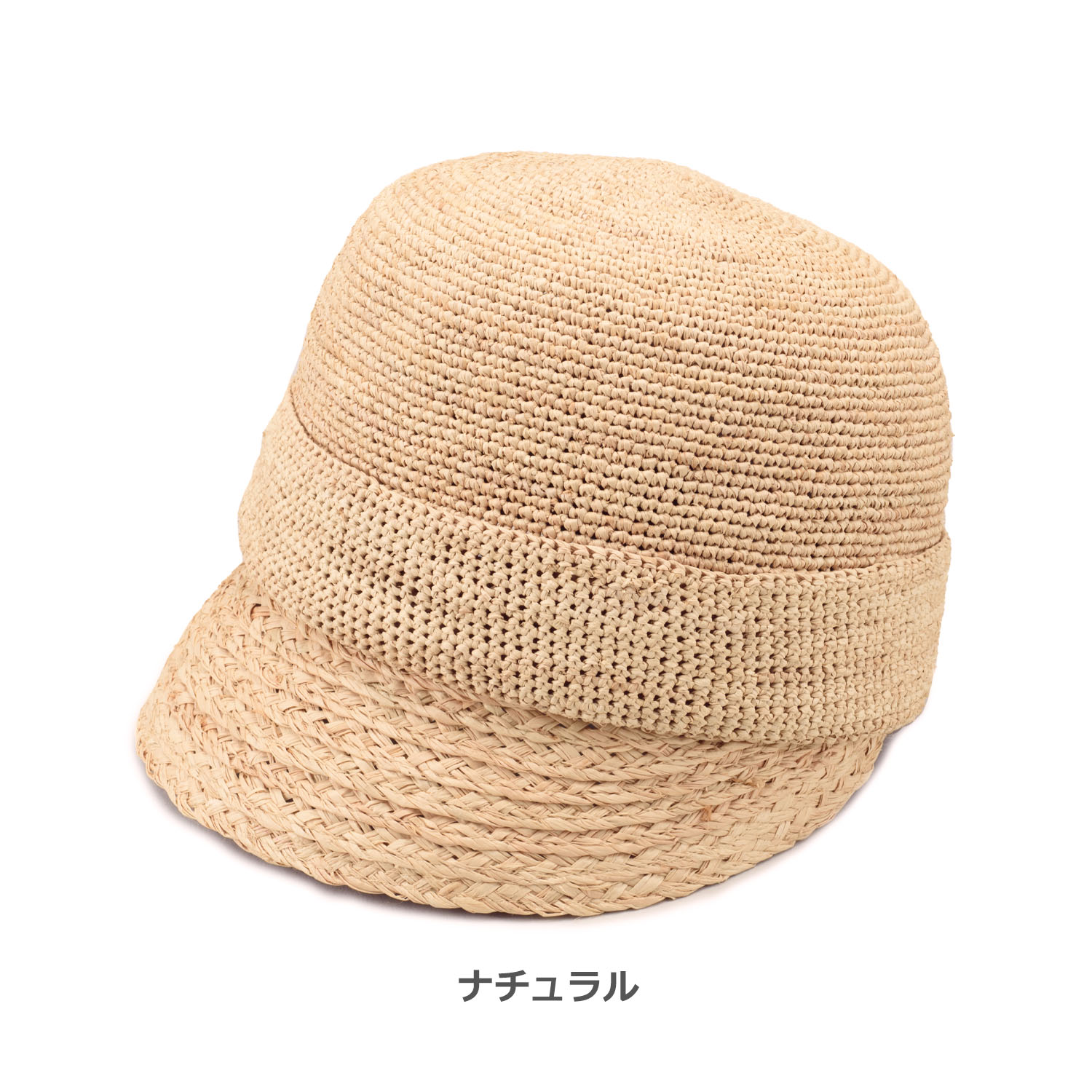 ざっくりとした細編みとブレード編みを組み合わせたラフィアのキャスケット。