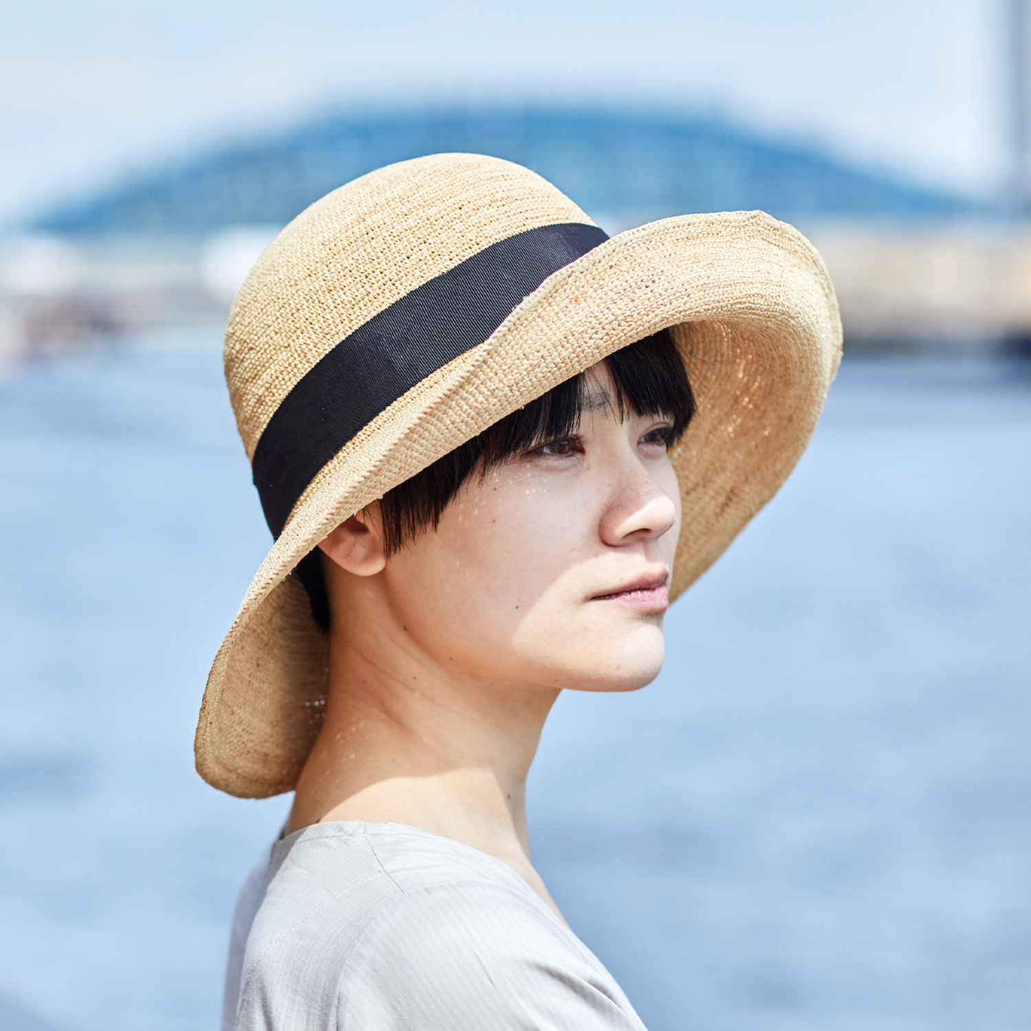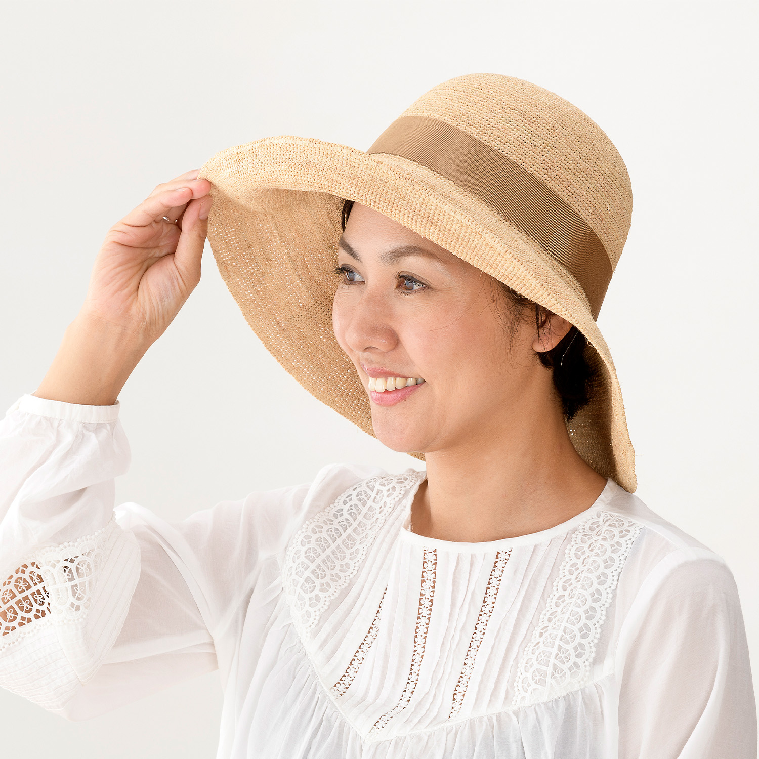 TOP > 婦人用帽子 > 田中帽子店Fiona(フィオナ)ラフィア つば広リボン キャペリン/57.5cm 60cm