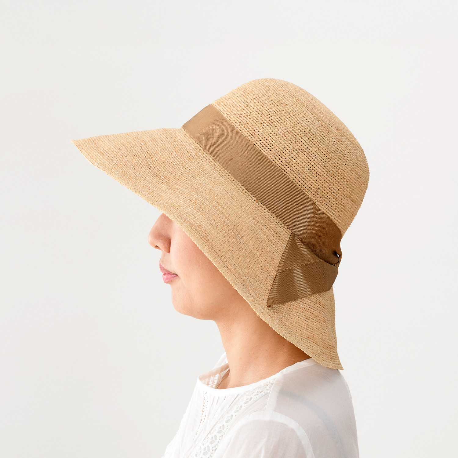 田中帽子店 Fiona(フィオナ) ラフィア つば広リボン キャペリン/57.5cm 60cm