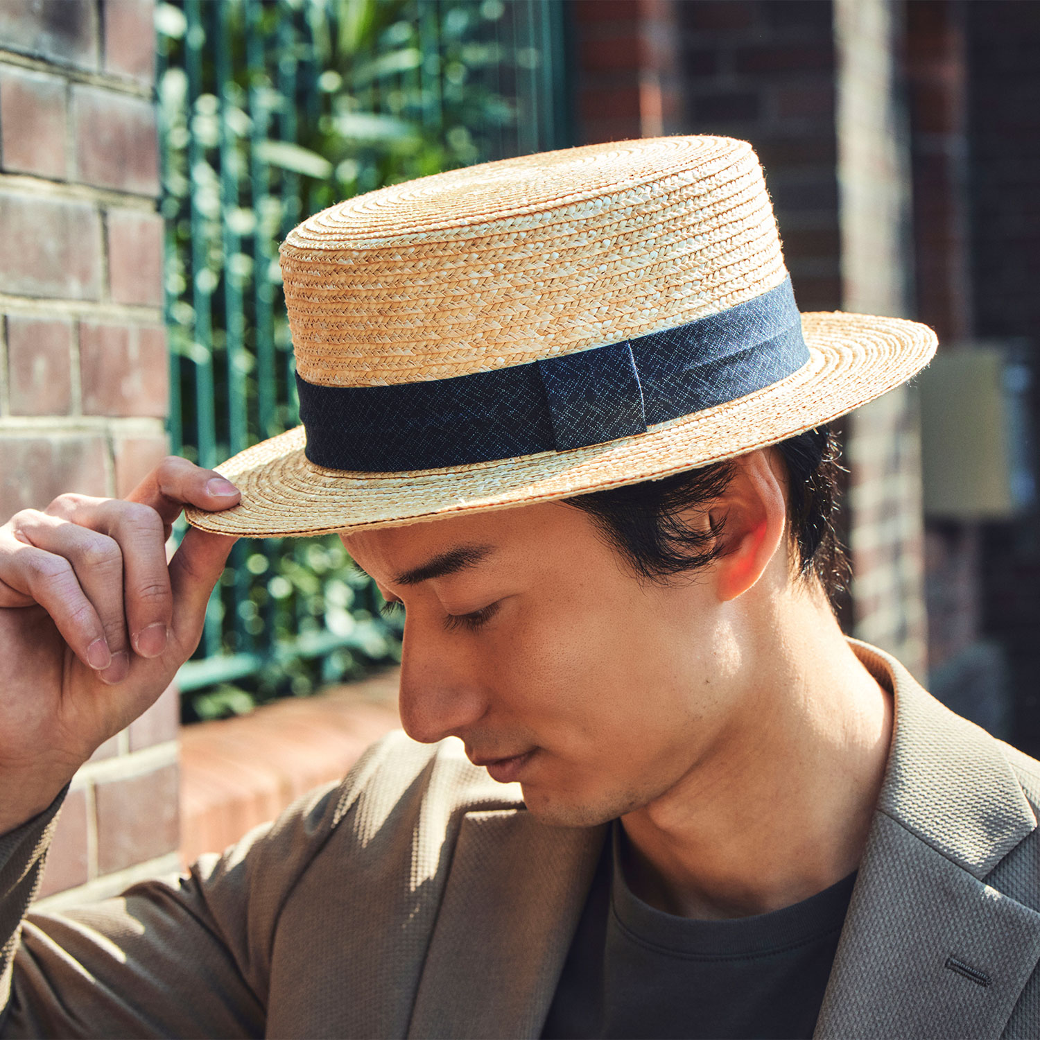 通気性に優れ、日除けに最適な「麦わら」素材